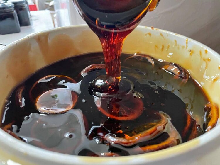最后熬15小时后成这样琥珀色即可出锅: